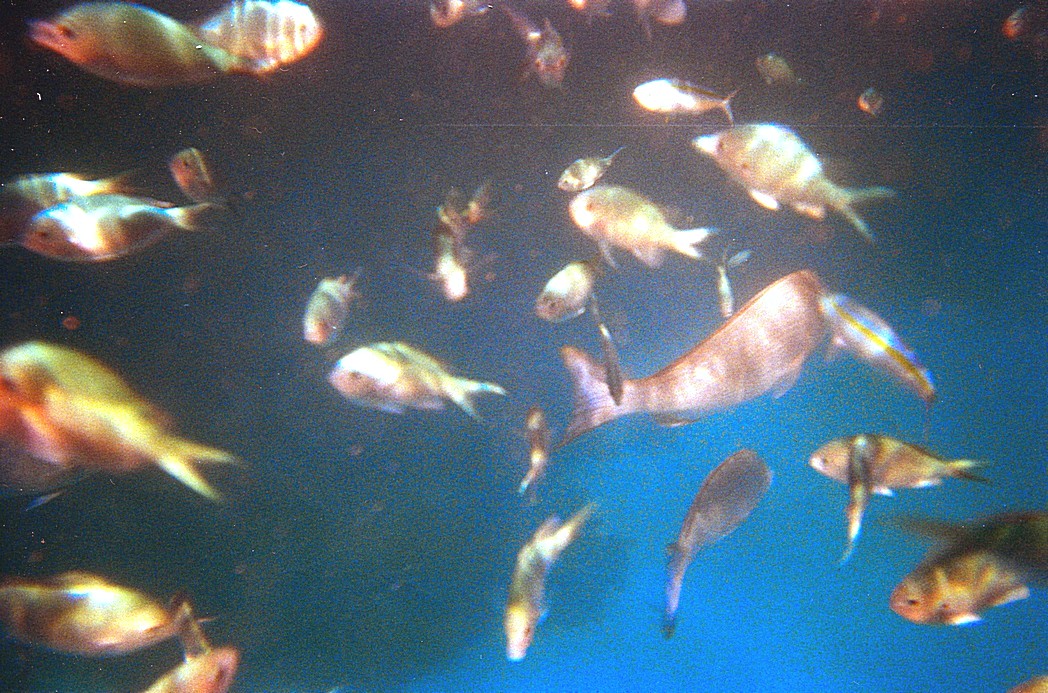 We then stopped at the place where we were going to feed the fish and I thought this was just handing a bit of food over the side to them, but no, it was actually swimming in the water with the fish. So although I'd just taken my costume down to my middle and put a top on, I had to put my wet cossie back on again because I knew I had to get back in the water. Swimming with the fish and feeding the fish was just a fantastic experience, they were just swimming all around us, they were all shapes and sizes and colours.