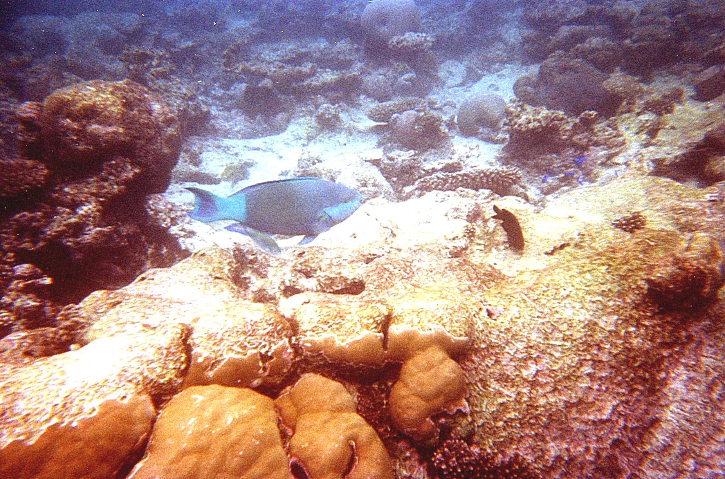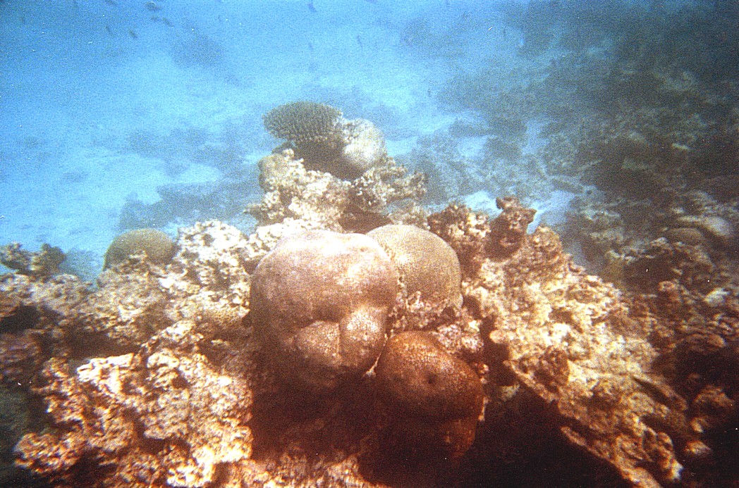Saturday 13th June 94 km A fine morning, but quite cool and we left at 9.30. We soon took the road towards Coral Bay and Exmouth and passed a very large oxen with big horns by the road. At 10.10 we passed a sign saying the Tropic of Capricorn, it didn't feel very tropical. We saw two birds beside the road possibly young wedgetails and we also passed an area of large termite mounds. We arrived at Coral Bay at about 11 o'clock and we soon realised it was hot, the sun was shining and we also found the place was very crowded. There were two caravan sites, we chose the cheaper of the two, Bay View Caravan Park, and it felt like arriving in Spain in the summer, but we found ourselves a pitch and put the kettle on for some coffee. After our coffee, things then happened quite quickly. We walked around to see what was going on and enquired about a long trip tomorrow, out to see the reef and various marine items, but tomorrow's was fully booked so it would have been Monday. We then inquired about the one o'clock trip which went for two hours out to the reef for snorkelling and that was on, so we agreed to do that. As it was gone 12 o'clock by now, we came back and quickly had a bit of light lunch, sitting outside. We then made our way down to the caravan where one got organised for going out on the trip with our goggles, snorkel and flippers and then went out on the glass bottomed boat for something of absolute sheer delight. We went out over the coral which comes in close to the shore at that point and saw lots of coral and lots of fish and when we got out to a point on the reef, we had three quarters of an hour swimming amongst the coral and fish which were just so magnificent, from tiny little fish up to enormous fish of about a metre long. There were all sorts in between, I saw a ray on the sea floor and also some long skinny fish like a pole and things like a cucumber, drifting below and all sorts, I sometimes just gasped in amazement at how beautiful these fish were, just sheer delight swimming with them.