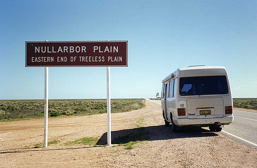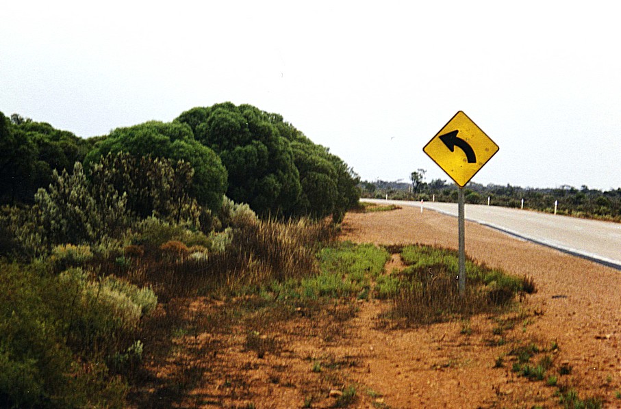 We continued west, still listening to our recording of tape five, including Kangaroo Island, which made interesting listening. We were so pleased that we'd been doing these recordings to capture our feelings at the time. We came to a sign which said Nullarbor Plain, eastern end of treeless plain. We stopped to photograph that and just then put in the REM tape which started playing "It's the end of the world", it seemed rather fitting - the time was 2.45.