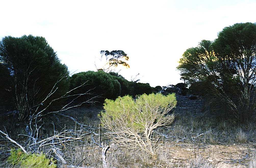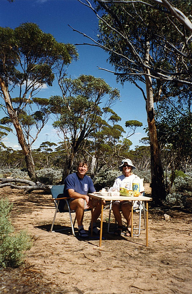 After lunch I had a short drive and it wasn't long before we got to Norseman arriving at about 2.15 new time [Rosie doesn't actually say that we had therefore crossed the Nullarbor Plain!]. At Norseman we first located the petrol station and got diesel - cheaply and filled the water tank with water and emptied the loo. I went across to the post office and we collected our post which we quickly read through - letters from Renee, Tom - with a photo of him at Levisham Station, Rosemary Bateman and from Lyn and John and a card from Paul and Nicky. We then went to tourist information, picked up one or two leaflets and then went to a supermarket and did a bit of shopping, by which time it was just about 4 o'clock. We turned north from the Norseman towards Kalgoorlie and we travelled for about ¾ hour and turned off into a very large parking area. The Western Australia parking spaces don't look much from the front, but they go back a long way - the ones we'd seen anyway, so we parked ourselves well into the forest and that's where we spent the night. After supper we did a bit more sorting of leaflets etc.