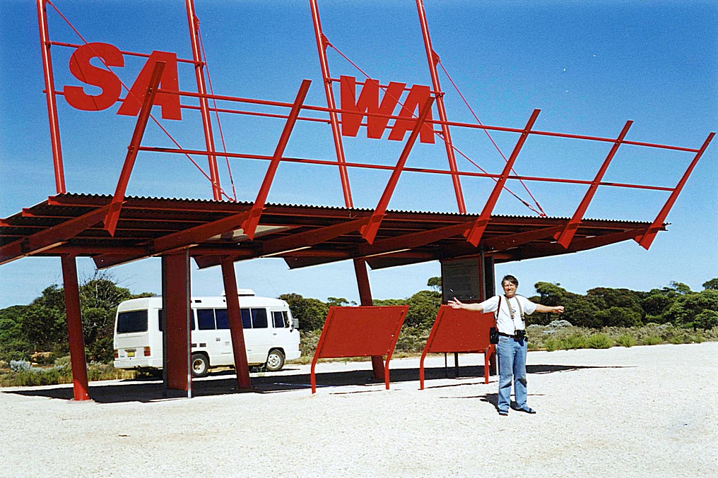 Then it began to slump and wasn't cliff like any more and went down towards the sea gradually . We soon came to the border between South Australia and Western Australia and we went through the greatest interrogation of quarantine that we'd experienced going through any customs anywhere, but all we lost was a lettuce - we knew we couldn't take any vegetables, but lettuce! We exchanged one of our boxes which apparently had been a banana box and were given a nice new box and apart from that everything was okay but the customs offical (a lady)did go through the whole van. She asked me in what state did you get the lettuce and I said it was in a pretty good state, then I realised she meant, State, meaning what State of Australia. I'm not sure she was amused, but I thought it was funny.