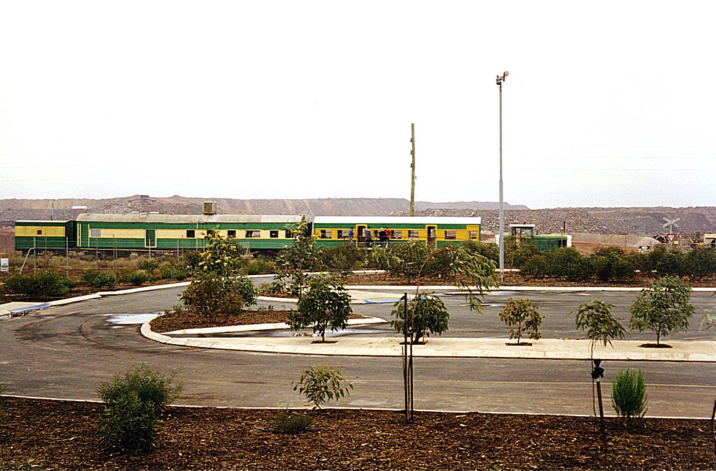 Awoke quite early about 5.30 which would have been 7.00 and it was still dark, the reason being it was very misty and it stayed that way for a while and didn't really entice us to get up, although it was attractive in its mistiness, but it would have been nice to see some sun. We left at 7.15 and headed north, there were a large number of road trains on this route. We headed for Kalgoorlie - Boulder, but the fog didn't show any signs of lifting. Every now and again we'd go into a little reprieve where we could suddenly see but then we went back into rather thick fog again. At Widgiemooltha we did a little tour of the deserted town and at Kambalda we saw the two, East and West Kambalda, mining communities where nickel is now mined - the gold dried up at the beginning of the century. This looked about as uninteresting as anywhere could look and looked pretty dour, particularly with the heavy fog. Just after we left Kambalda, we did see two emus beside the road, which was a highlight of this rather dull and drear morning. We arrived at Boulder, the twin town with Kalgoorlie soon after 9.30 and made our way to the railway station where there was a tourist type train journey on the Golden Mile, the old goldfield route and we investigated it and took ourselves off to this. A young lad had told us that we’d left our lights on and it turned out later he was the chap driving the train. I must say this was the ugliest train journey I've ever been on. I've never seen such godforsaken looking places, it filled me with just yuk. I did not find it an enjoyable experience.
