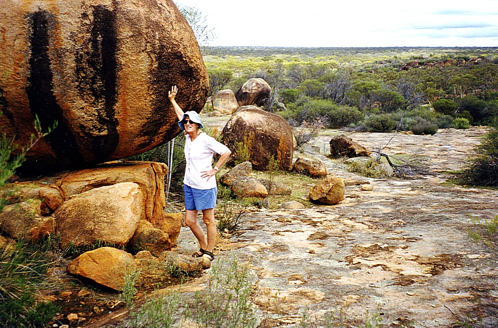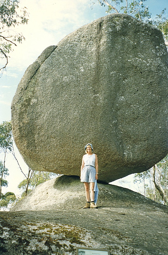 We awoke to a grey day but actually the sun very soon came out. There had been sprinklings of rain during the night. By 9.30, we'd driven back into the park and parked in the carpark and ascended the footpath to Balancing Rock and Castle Rock. We were perhaps disappointed at the lack of any bird life in the trees after last night. It was quite a pleasant walk but we couldn't really see out much because of the tall Karri trees. When we got to the top, which took about half an hour to actually climb and quite a steep walk, there were enormous granite boulders, there had been some on the way up too, but the last bit from the Balancing Rock up to the Castle Rock was real rock climbing and very difficult. I managed to do it, but then there was an ascent on a long ladder with a sort of wire along it for a handrail, to the top of the rock, which despite a couple of attempts, I didn't make.