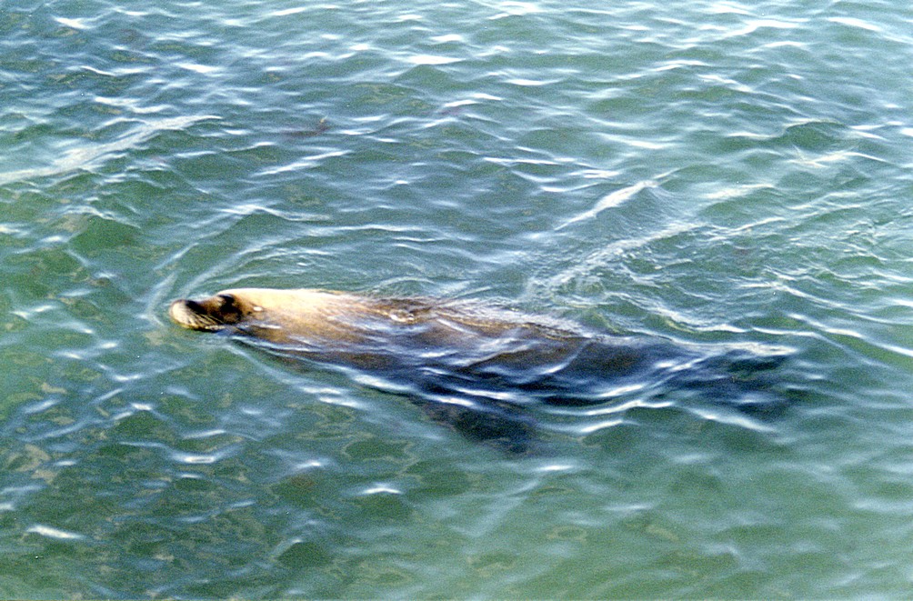 We had a look at Picnic Cove and then went along the rest of the beach and looked out from Wireless Hill at a lookout built by the Rotary Club and then down into Esperance itself. We then headed for a swimming pool. This was rather a basic sort of swimming pool but at least it was open. The water was cold although it said it was a heated pool, it was a sort of square pool about 25m by 25m and by the end of the 20 minute swim I was nicely warmed up. But we then found that the showers were also cold which was a bit of a downer, because having a shower and hairwash after swimming was a bonus normally. I chatted to a girl in there, who was travelling around Australia with her husband and had actually had stopped off to work in Esperance for a year. While we were chatting, there was a tremendous crashing on the roof and I realised it was raining heavily. We made our way out to the van and had our tea coffee in the van as it continued to rain and very grey. We continued to busy ourselves with jobs in Esperance, I took the film in to be developed next, and the lady in there said "was I coming to visit my relation Ralph Bower" and I said "no, we had just seen a reference to Jill Bower in the swimming pool on a notice” and "yes" she said "that was his wife, there is only one Bower family here, I thought you'd come to visit them". The photos by the way, weren't very good when I got them back. We then went to the laundrette, wonderful things laundrettes when you're travelling and while the washing was doing we went across to the SuperValu supermarket, first of all to the booze part of it. And having done all that, the washing was all done and we then went and had lunch in the van on the front, wishing that the weather was nicer. We then went to a garage where Adrian did all the van looking after things, filling up with diesel, getting the gas bottle filled, filling up with water, cleaning over the van and then we collected my photos. We we went to the toilet on the front and empted the loo and then we wanted to photocopy the letter we’d written to Toti. We'd done that and were just making our way back to check the postage at the post office when the phone went and there was Tom on the phone phoning from Elm Gable, just on his way back to Sheffield and he was then off to Ireland for a few days. So we were able to have a chat and found out that Paul and Nicky had put some money down on a house and several other items of interest. It was nice to chat to him being in Esperance as he was here last year and him also having crossed the Nullarbor. And he mentioned to us that under the wooden jetty, there was a sea lion which I had read in the notes here but not taken in, so we made our way there next and sure enough, there was a large adult sea lion right underneath the pier and two younger sea lions, and we spent a happy half hour watching and filming them.