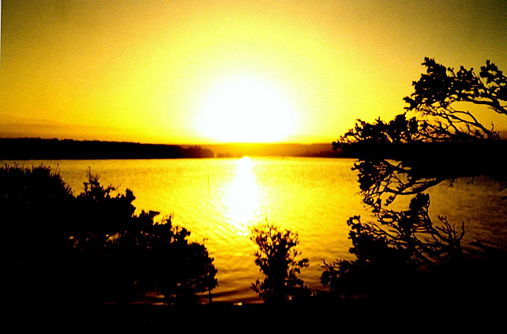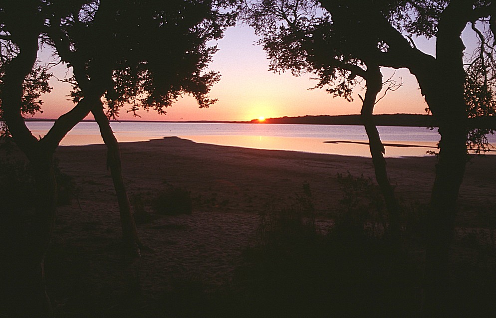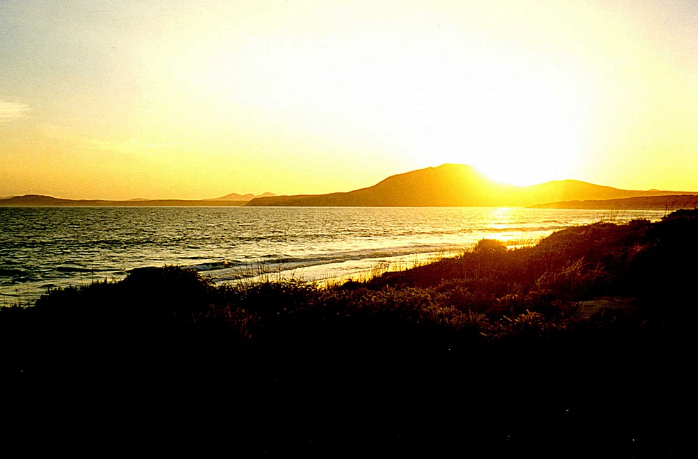 The sun had now come out and it was quite pleasant and we could see that, as we knew before, that this place is very, very beautiful with the islands and headlands all around it, and the turquoise sea. We then made our way out of Esperance in an easterly direction towards Cape Le Grand National Park. We drove into the Park which was incredibly beautiful with just masses of greenery and hills and sea and islands just beyond. We went down to the campsite at Le Grand Beach, the actual pitches were sort of hidden behind hedges. We arrived just as the sun was going down behind one of the islands and we were just in time to photograph the sunset, from this beautiful white beach