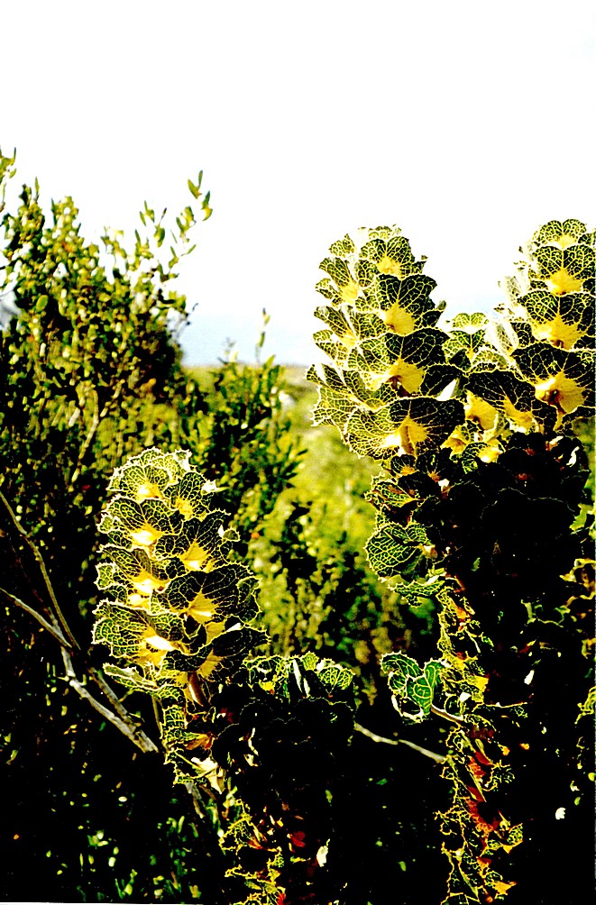 The night was windy with a little bit of rain, and we awoke to a very windy morning. We left our car park spot and drove to the outskirts of the Fitzgerald River National Park and had our breakfast there overlooking the Culham Inlet. We saw a large bird of prey above us and had a look at the beach there. We then drove into Fitzgerald River National Park and down to Barrens beach, a dear little cove, it was very hot in the van but a very strong wind so we didn't stay long on the beach. We continued into Fitzgerald River National Park with spectacular views, particularly as we climbed higher and looked back over the coastline and also some interesting and different plants. Different sorts of banksias and eucalypts, and some very strange plants - there are a lot of plants which are only in this park.