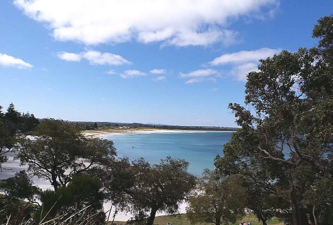 We met another lady there who was the forward party of another group, and on the way down we'd actually passed quite a few groups of people. We did tell one group how long the walk was and they decided not to go. We had our coffee at a large picnic table at the bottom and left at about 11.40. We made our way into Albany via the two rivers. We had our lunch in a picnic area by the Lower King River bridge and shortly afterwards stopped at a petrol station, where we filled up with diesel and gas. We drove down to Emu Point where everywhere looked absolutely lovely, clear blue sky, a beautiful view looking out over just water and green covered hills to the sea, land and sea all around us. There were lots of people just enjoying themselves around this point. We located a caravan site, that said you could hire bikes from and after an initial difficulty we did manage it and we then cycled the length of this bay down to Middleton Beach - very enjoyable. It was a cycling and walking track adjacent to the sea but there was a sort of shrubbery bit between us and the sea and sometimes you couldn't see out but other times you could.