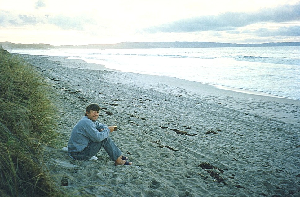 Adrian with an early morning cup of tea at Cosy Corner near Albany