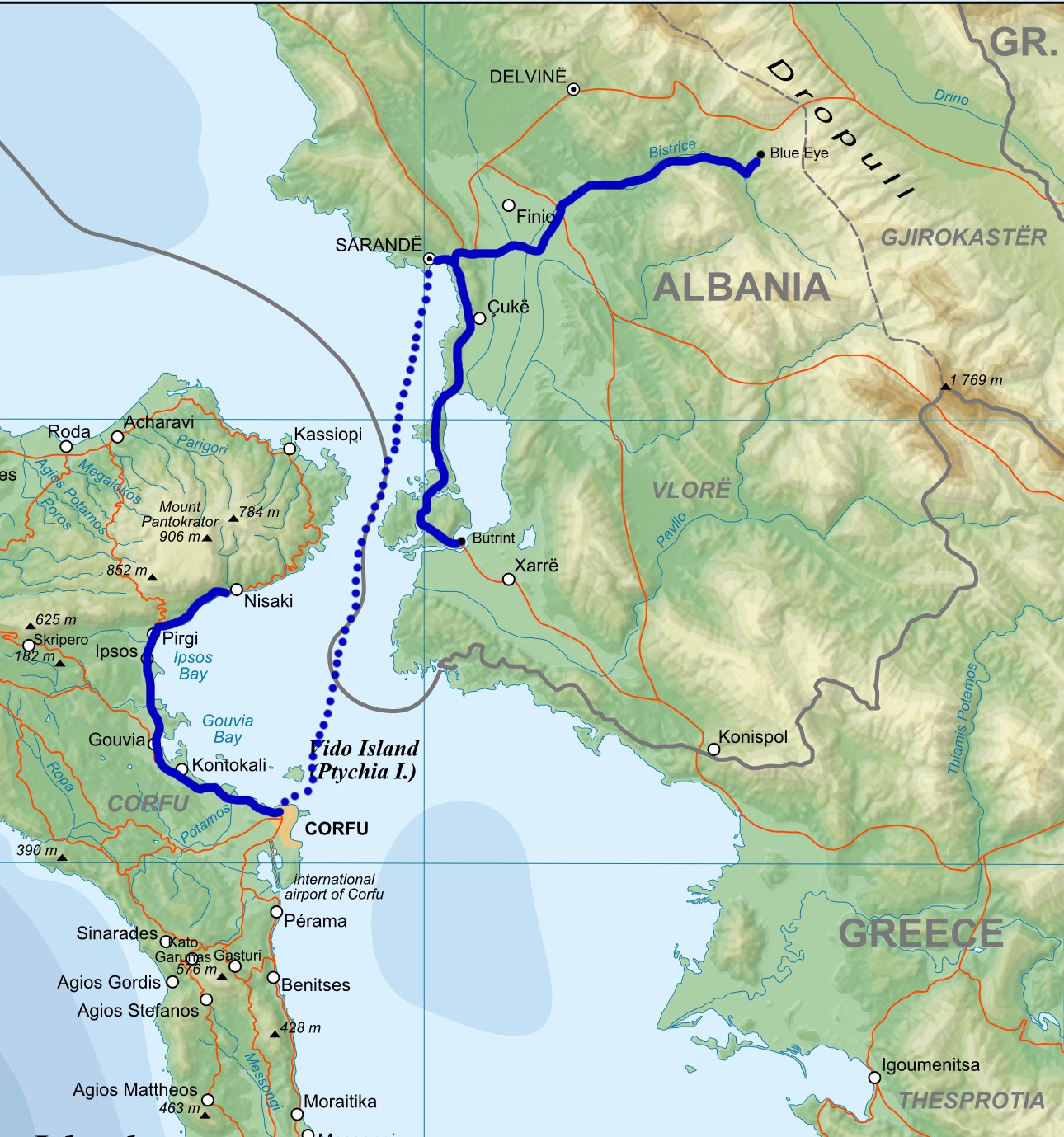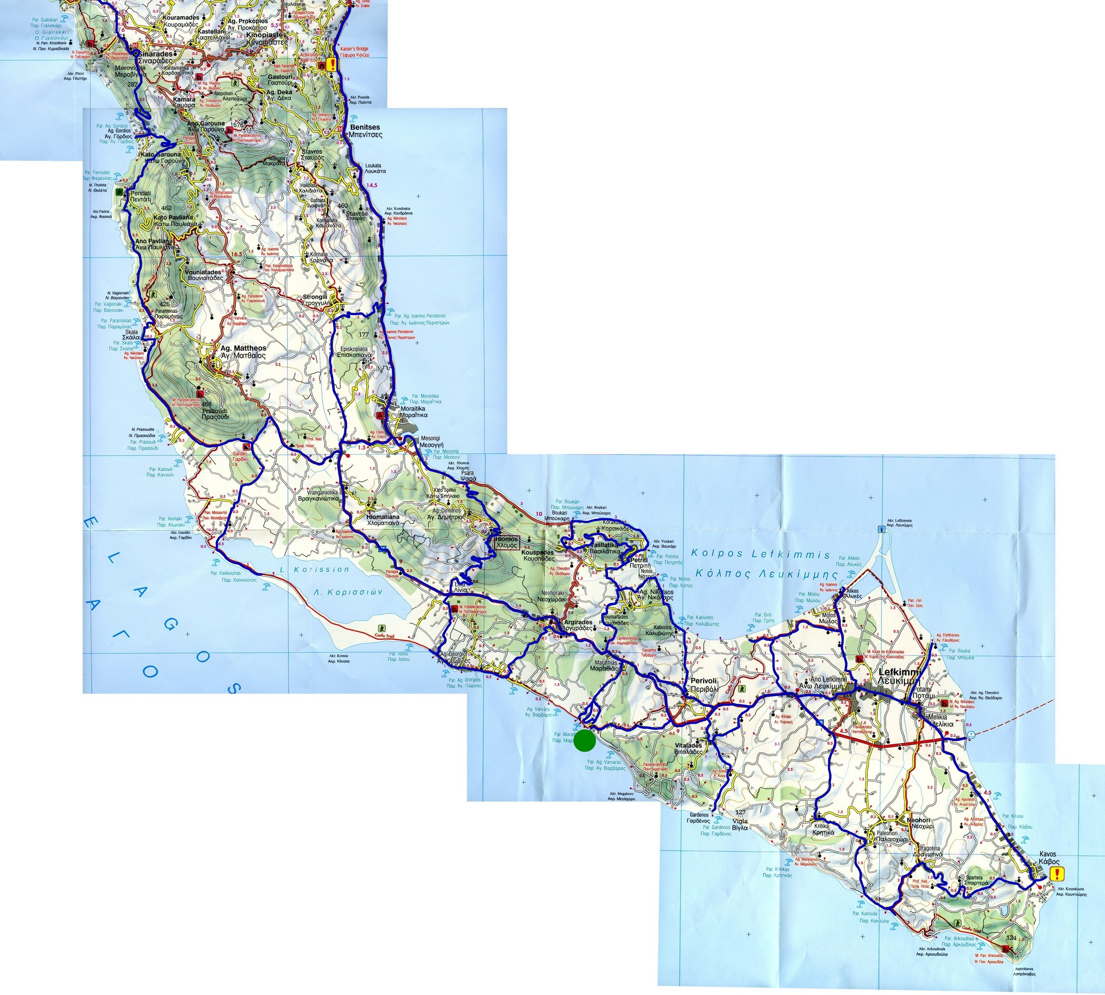 Route map for south Corfu
