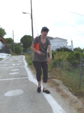 A sunny morning. There were two other couples at breakfast. We had a sort of eggy bread and then the delicious fresh bread with cheese and jam. Costas2 was eager to please as ever. He said that he was cooking moussaka tonight, then remembered that we don’t eat meat, so hoped to do a veggie one for us.