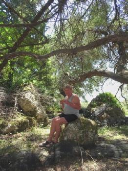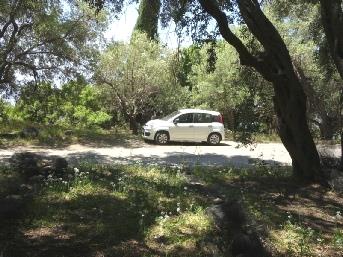 This extreme southerly tip was a haven of green trees, but once again with nowhere at all to pull off with a bit of shade to sit in for our lunch. It was almost a repeat of yesterday, as we managed finally to park by another shady olive grove, but this time we sat in the car, with our feet out of the open door. It was really peaceful and quiet.