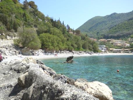 There was no shade on the beach, so we continued towards nearby Kavos, which is written about so disparagingly in both our guide books as being the place not to go to.