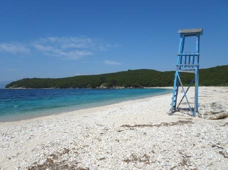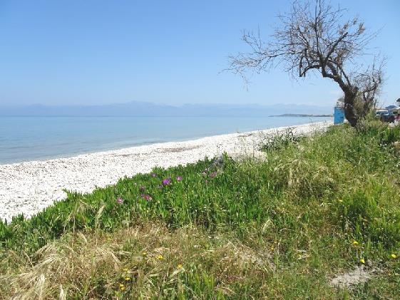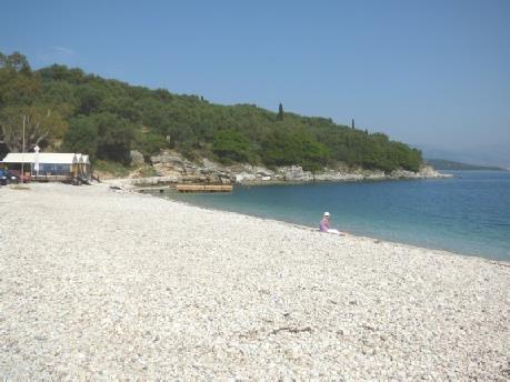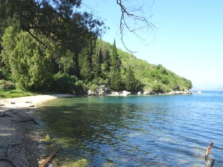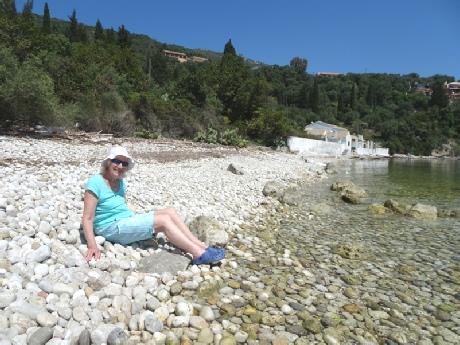 Our last beach was Kouloura, which we didn’t actually get to, as a badly parked car was almost blocking the road. Instead we made for neighbouring Houhouho Beach, which was again pebbly, but deserted and quite lovely. We walked along past the beached pontoons to the end of the beach, before five minutes sitting on the pebbles and looking to Albania, very close by.