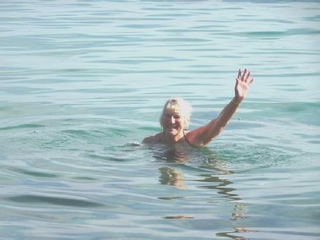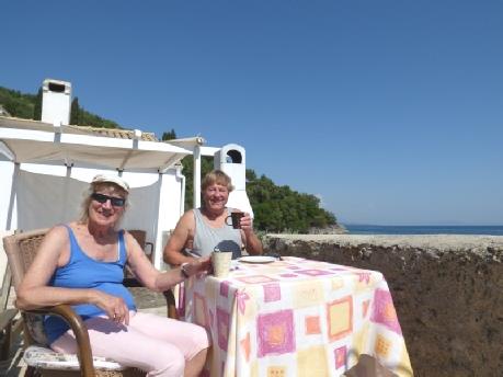 We're getting used to this Corfuan way of life! I was up late on a morning that was slightly cooler, with noticeable waves. It was still lovely sitting on the terrace for breakfast. We needed to go up to Katerina supermarket to collect our fish. Just as we were leaving, the housekeeper arrived, so chatting to her delayed us for a while. She is from Cheshire, but has lived here with her husband, in a village 45 minutes away in the mountains, for 8 years, and loves it. She also does home caring, and has just been back to England for 4 months. She was originally a gardener. They have 19 cats and a dog! She reminded us of Sharon, and was very easy to talk to. Costas and Vicky then arrived, so our departure was delayed further!