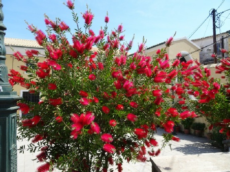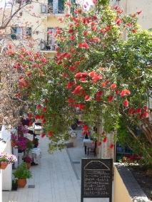 At Petriti, where there were fishing boats in the harbour again, people were setting up ‘for the season’. We were able to drive along by the coast to Boukari, where the gardens were bursting with bright, colourful flowers.
