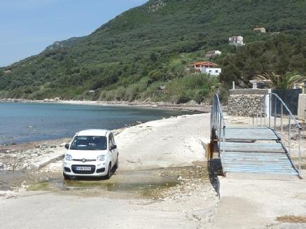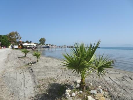 Just before reaching Lefkimmi, we turned down to the ‘port’, where a boat leaves from for the one hour crossing to Igoumenitsa. The vast expanse of car park was virtually empty. There was no-one about, and the boat stood with its bows open – we could imagine driving on and arriving in mainland Greece!