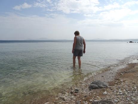 We drove a few miles on to Gardenos beach, once more with a stream emerging. It was also very quiet, with just two tavernas. Again we walked onto the deserted wide sandy beach.