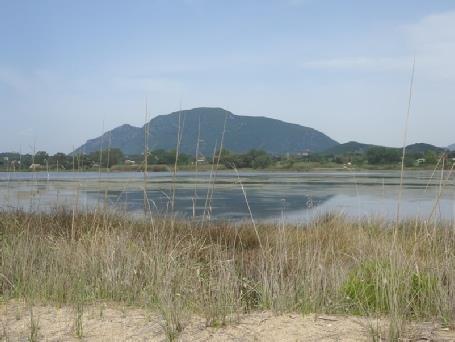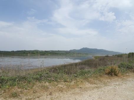 We were at the northern end of the lagoon, which you could walk around, and we would have done once. It was a reserve, and was supposed to be a haven for wildlife, but we saw very little. We drove partway on a sandy track along the southern edge, which was fringed with juniper trees. The lake had much weed, and didn’t look that attractive. We spied a group of white birds across on the other side, and a lone egret, but apart from that, just one group of waders. (Much later, we passed a dead glass Lizard – looks like a snake - on the road). There were one or two more taverna shacks – people arrived to erect palapas at one.