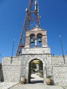 We had read that the monastery at the top had been engulfed by hundreds of antennae, and it certainly was! The biggest, which stands in the monastery, Costas tells us was erected in the 1960’s when the Colonels were in power in Greece, to send television signals to all Albania during the Communist era. It has to be seen to be believed as a travesty of planning.