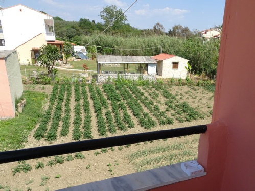 Our shady balcony and Costa’s vegetable garden at Marathias Beach