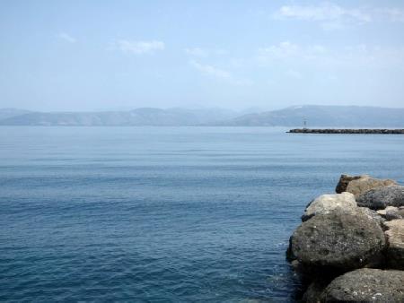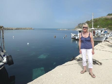 We had decided to see the bit of coast north of us, so set off at 10.15, through Marathias and Perivoli to Kaliviotis Beach. This area has very few tourists, mostly because the beaches are of mud and pebbles. It looked quite attractive, with fishing boats in the harbour.