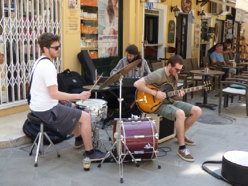 However, we had difficulty in finding an eating place to suit us when lunchtime came, but ended up at Lafran, where we had attentive service and enjoyed sardines (A) and aubergine & feta (R), sitting outside. It was an excellent place for people watching. A short distance away a small group were playing modern jazz, which added to the pleasant atmosphere.