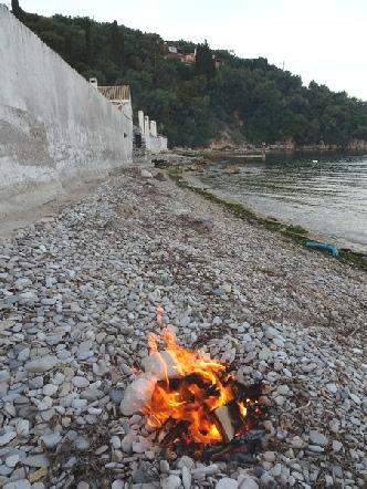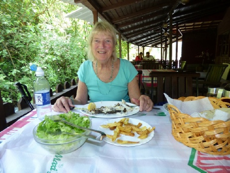 We went over to ‘Dimitris’ for our last meal. We ate sardines, with potatoes from Costas’ garden.