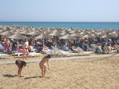 We had seen masses of cars parked, so after working a bit on the website, we walked down to the beach. We couldn't believe the number of people enjoying the bank holiday. Some were eating at the taverna in front of us – which hadn’t opened until today. Hundreds more were lying on sunbeds or playing ball on the sand. Children were having fun in the stream. Before there had been just one or two people – what will it be like tomorrow we wondered.