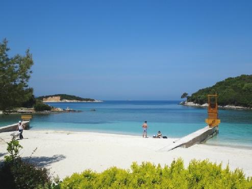 On the way back to Saranda, we stopped by Tre Ishujt restaurant in Ksamil, beautifully situated by an (imported) white sandy beach, with exquisite aquamarine sea.