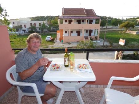 Having got our cash, we drove back to Marathia beach, diverting to drive the roads at the western end, before coming back to our balcony to enjoy our last lunch.