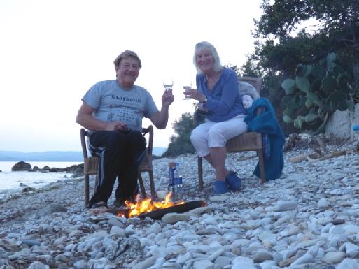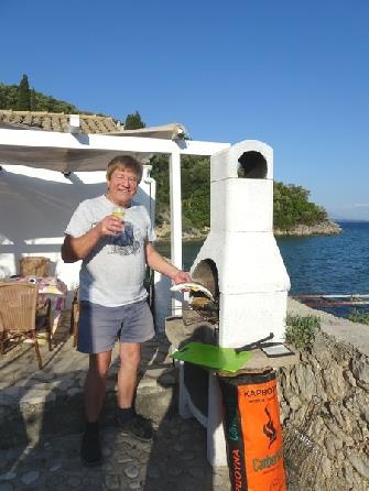 We walked over to eat at Dimitris, surprised that there were no extra people dining. We had fresh fish – we went into the kitchen with Anna to see – memories of Greece in 1963 - with good chips and salad. Costas2 brought us a drink afterwards – not ouzo, but distilled from grapes, without the aniseed. I preferred the ouzo! Many cars were leaving, but a few were still arriving. Costas2 said that people came from a long distance, like Corfu Town. We came back to our room at 9.00, with the music still booming.