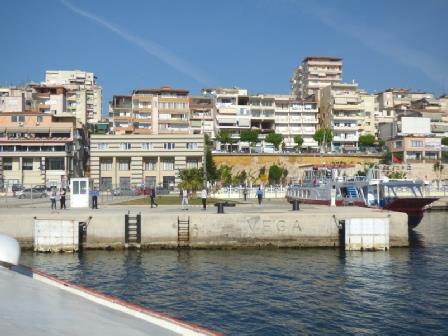 At 10.00 we arrived at Saranda – a large town of apartment blocks and hotels, none of which fortunately were more than 10 storeys high, which stretched right around the bay. I was excited to come to Albania, as the country had fascinated me since 1967, when we’d had to drive around the outside to get to Greece. I wasn’t able to conceive of a country which you couldn’t visit.