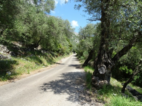 Ascending Mt Pandokrator through the olive trees