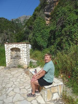 We stopped soon afterwards to have our tea/coffee on a seat by the beach. Even though it was a bank holiday, there were no other people around. A bit further along, at Notos, we had to travel inland to get to Petriti. On the way, there was no sign of tourism at all. Everywhere looked very genuine Corfuan.