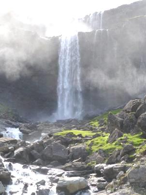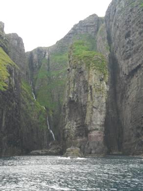 Now it was time to leave Vestmanna in its attractive bay, with a waterfall cascading at the end.
