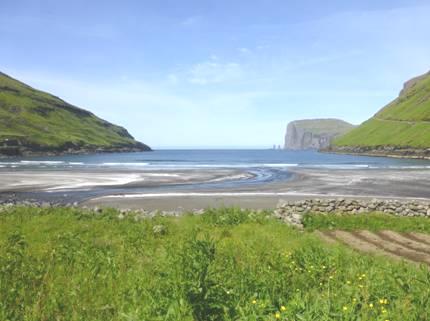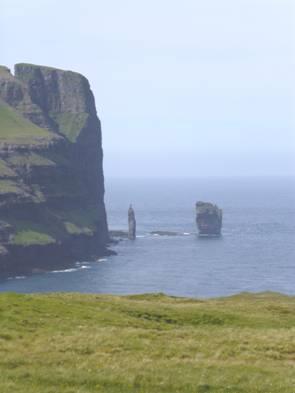 We now drove north on Vidoy, on a road set high above the fjord, to the only other village, Vidareidi. This village, the most northerly in the Faroes, is again set on an isthmus, and is a surprisingly ‘normal’ village for such a location. The views are fantastic – to far northern parts of other islands to the west, and to the amazingly steep island of Fugloy to the east. To the north is the high headland, which ends in Enniberg the highest sea cliffs in Europe, possibly the world. Not for us to view – there are no roads there.