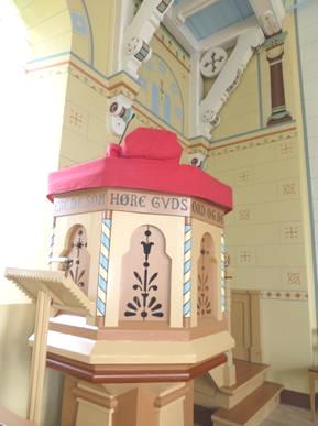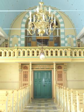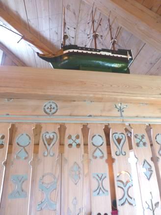 It was quite delightful, with rows of wooden pews, and a nicely carved screen. It seemed really well cared for. Like those in Iceland, steep stairs led up to a little balcony, where there was a tiny organ. There were two models of old ships near the wooden rafters. Adrian liked the wooden window shutters.