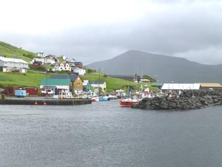 We now drove north to the fishing town of Fuglafjordur, where we were hoping that there was a campsite, as one map suggested. There wasn’t one, or any real accommodation, despite this being the fourth largest town in the Faroes. We couldn’t even drive through the town, as a fete was being held, and the main road was barricaded off! It wasn’t the weather for a fete, being extremely gusty, and often raining.