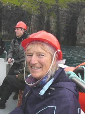 At about 10 o’clock, two chaps arrived and then we were on the boat, and off on our trip – no formalities or safety warnings. The trip was good, but more of a tourist trip than a bird spotting adventure. The scenery is certainly phenomenal, with sheer cliffs, enormously high. Any slightly level bits had grass on them, and we were amazed to see sheep grazing at these ridiculous heights.