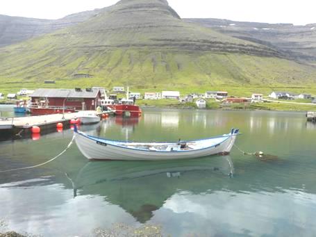 It appeared a very ordinary little village. We went inside the church – typical of so many – beautiful in its bare simplicity. It’s apparently the oldest church in use in the Faroes, dating from the year 1111. Outside, young boys were noisily playing with pretend swords. By the shore, a family of ducks and 2 swans swam about. A tiny boat was tied up, with a child’s tractor beside it, and other kids toys were scattered around. This seemed a fitting place to have our last memory of the Faroes – wonderful even in the drizzle.