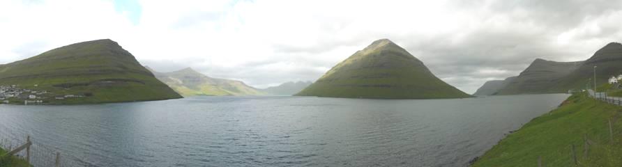 We drove just outside Klaksvik and had late coffee sitting on a seat outside with sea and peaks all around, including the islands of Kunoy and Kalsoy.