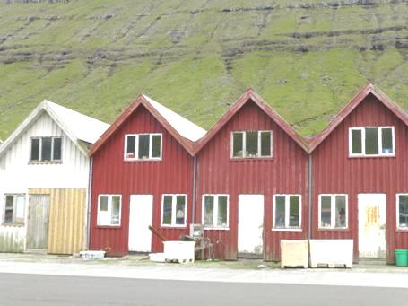 The road went through a 3km tunnel under the steep hills and came to Kollafjordur. The wooden houses were painted bright colours, and the little wooden church was painted black, with a turf roof and a tiny white tower.