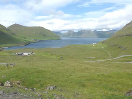 We started driving back up the peninsula, taking a road across to the hamlet of Lambi, beautifully situated at the end of Lambavik between steep, grassy slopes.