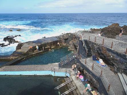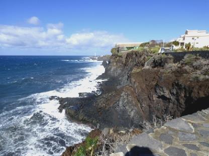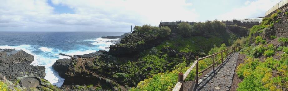 We now came to Santa Domingo de Garafia, in the far north west of la Palma. There hadn't been a road here until 1960, so the only access had been by sea. There was a massive over-the-top football pitch, and a very grand cemetery. We took a good road down to the old port. The car park at the end of the road was quite OTT, with low walls and lots of parking, but no seats or facilities.