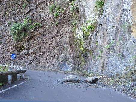 We came to 3 single lane tunnels hewn through the rock. Just before the third, there was a large rock fall, which almost blocked the road.