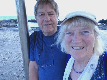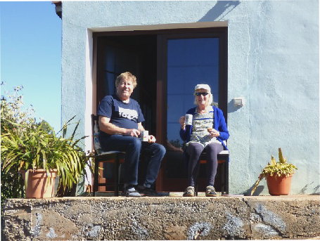 A relaxing morning. We tried out the shower (my pet hate) on this sunny but windy morning. I caught up with the diary, stopping for our 'elevenses', sitting on the relaxer chairs on the artificial lawn. We realised that we have a view to Mt Teide on Tenerife. We still weren't sure what time it was!