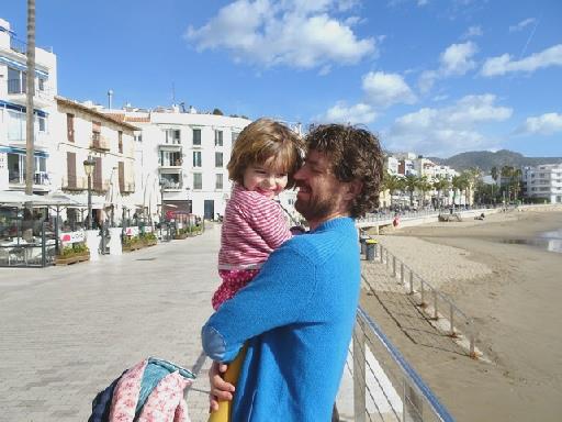We spent a few happy days in Sitges with Tom, Mar and Rita - now a competent and determined 3½ year old. We walked to school one day with her and Mar - yes, they start school at three here. We also went with Tom to watch her swimming lesson, in a small pool at a gym club in the centre of Sitges. It was lovely to see how confident Rita is in the water. On the way she saw and greeted friends everywhere. We had a wonderful lunch with Mar's dad and his wife at their apartment in Vilanova and also had visits from Mar's mum, and her brother and family - partner Elena and Noah (3½ and Rita's great buddy) and Theo, a very alert little 3 month old baby. We enjoyed some warm sunshine amidst the often windy weather, and some great food (and drink!)