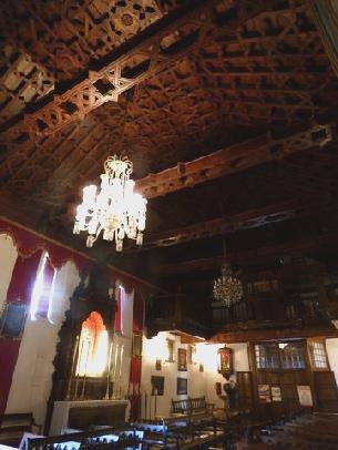 The church was large, and really long, very ornate and again with a carved wooden ceiling. Outside all but the front was painted white, with overhanging balconies.