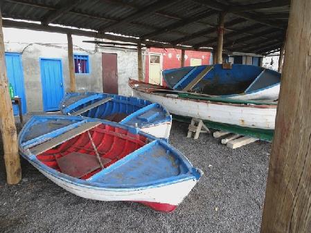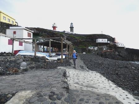 We drove on to the lighthouse – actually two, a stone one and newer stripy one, at Punta de Fuencaliente. We stopped by a little beach where there was a conglomeration of attractive fishing boats with the fishermen's huts behind them.