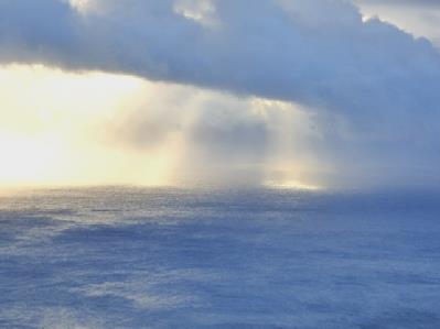 The sun shines down dramatically onto the sea